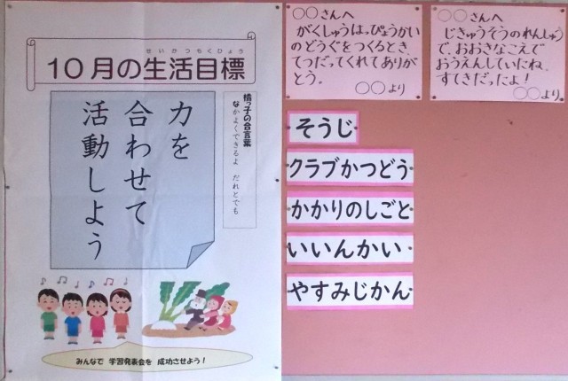自分のめあて、クラスのめあてを達成できるように、今月も取り組んでほしいと思います。