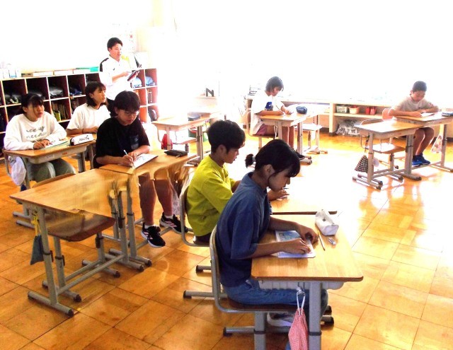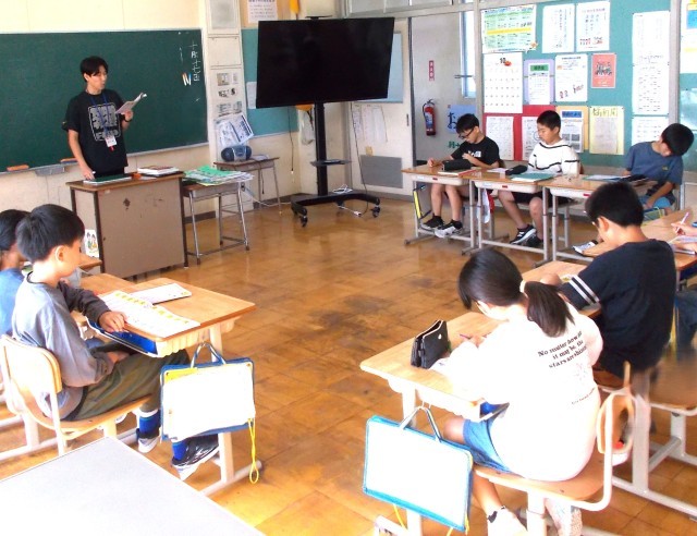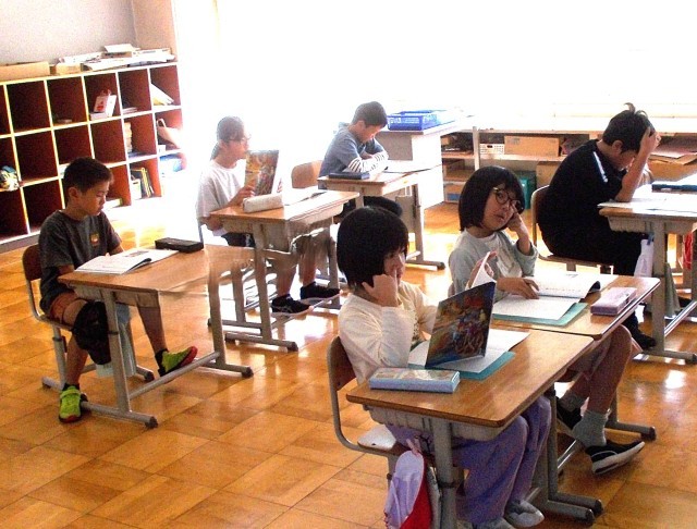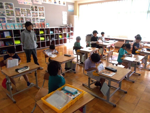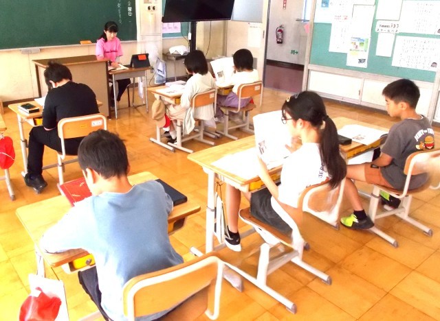 国語、算数の授業で、音読や漢字、計算(分数)等々、どの学年もしっかり学習していました。