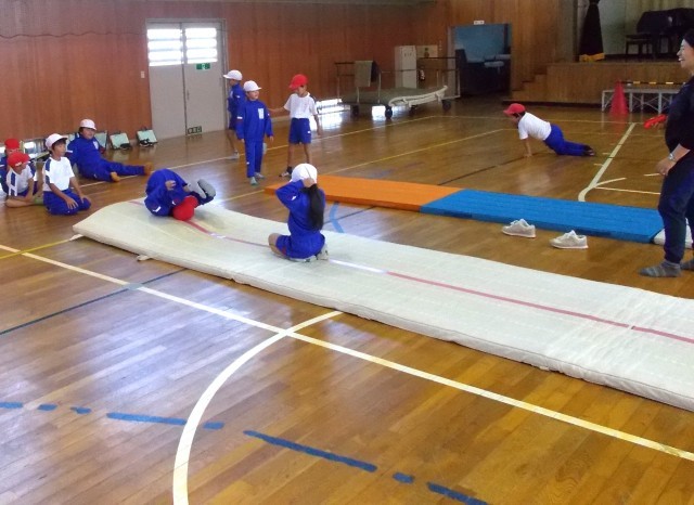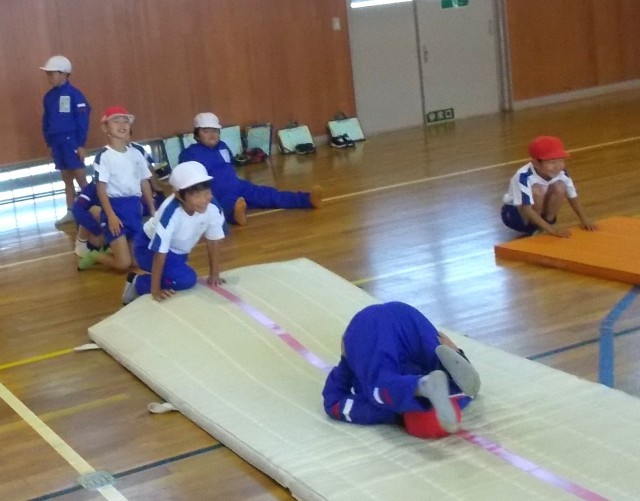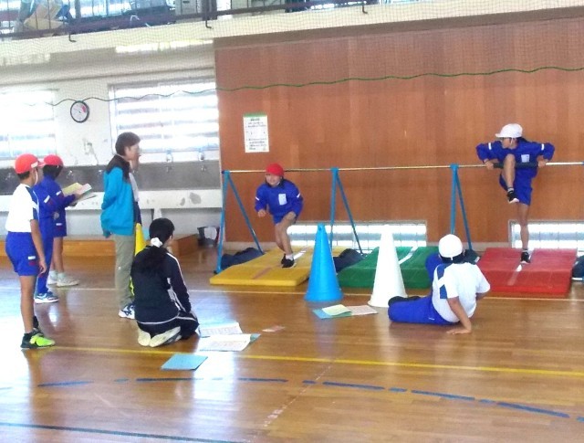 1・2年生は体育の授業を体育館で行っていました。