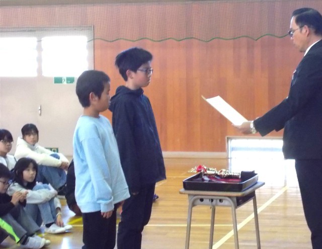 表彰は2件、①県の発明工夫展、②郡市内野球大会関係の表彰でした。