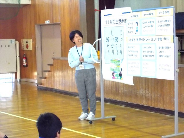11月の生活目標は「じっくり聞こうしっかり話そう」です。