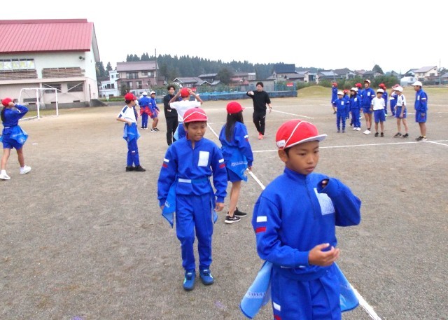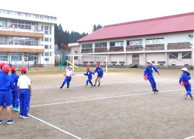 体育:4・5・6年生は、「フラッグフットボール」を楽しみました。作戦がハマると、ポイントが入るゲームで、まさに「頭脳戦」です。