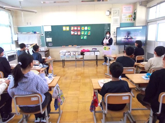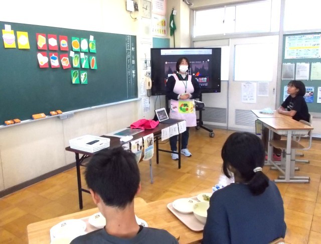 川西学校給食センター栄養教諭の村山里江子先生が来校されました。