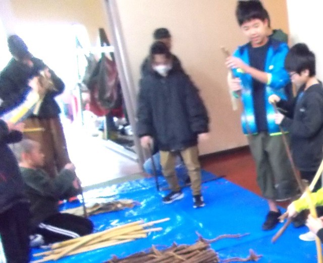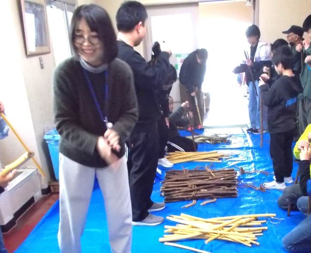 先週金曜日(11/14)に収穫した楮(こうぞ)を蒸し、皮向き作業を行いました。