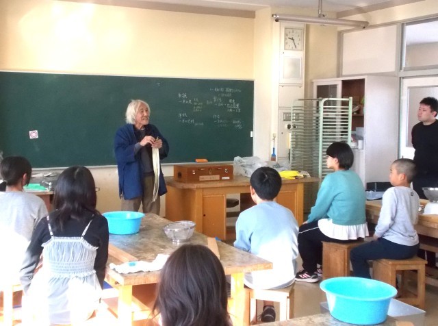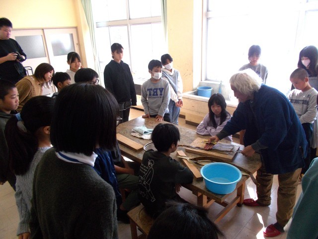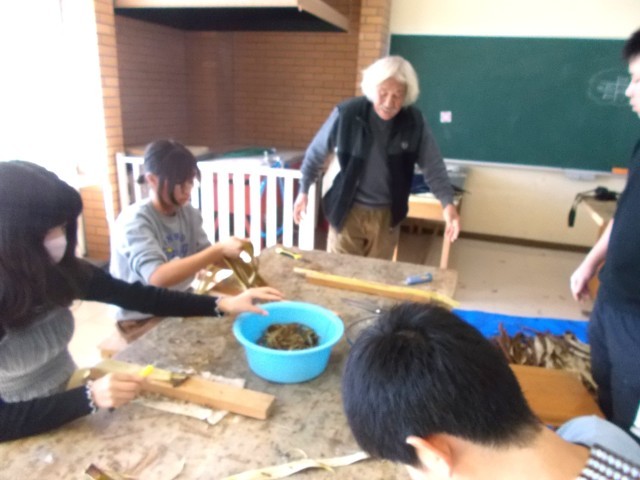 高志の生紙工房代表、越後門出和紙工房、小林康生先生をお招きし、楮の「皮ひき」作業を行いました。