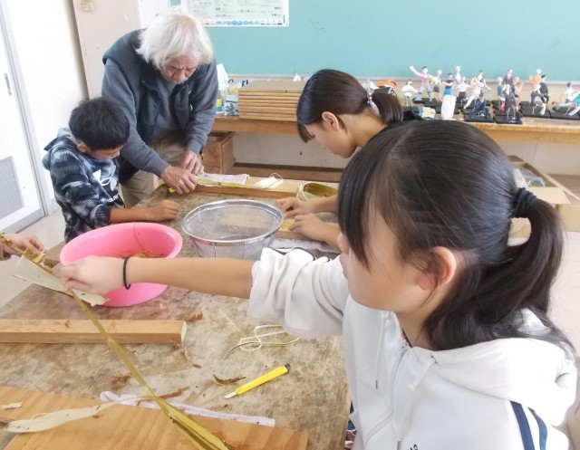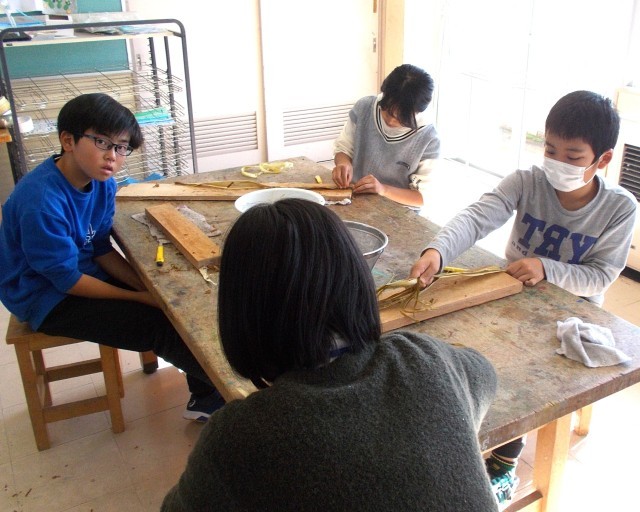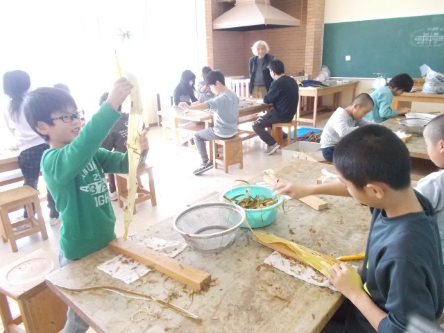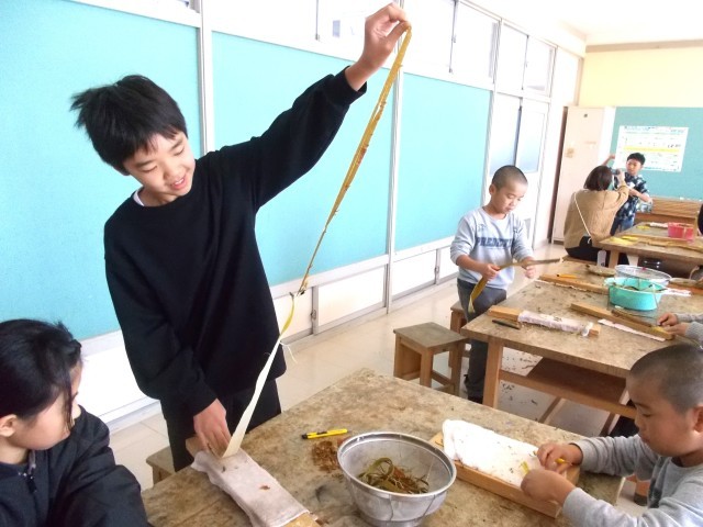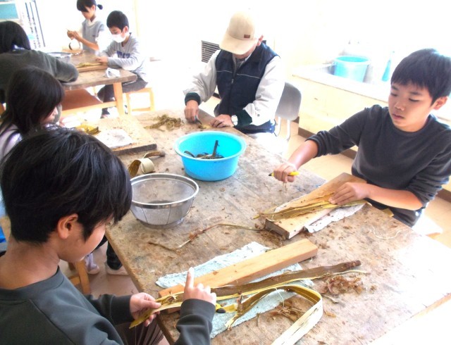 11/20 楮(こうぞ) 皮ひき 卒業証書用和紙づくり(5・6年生)