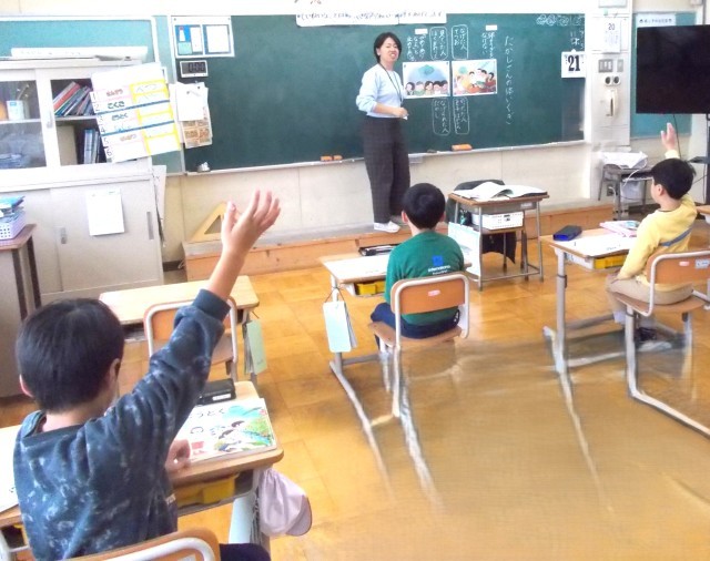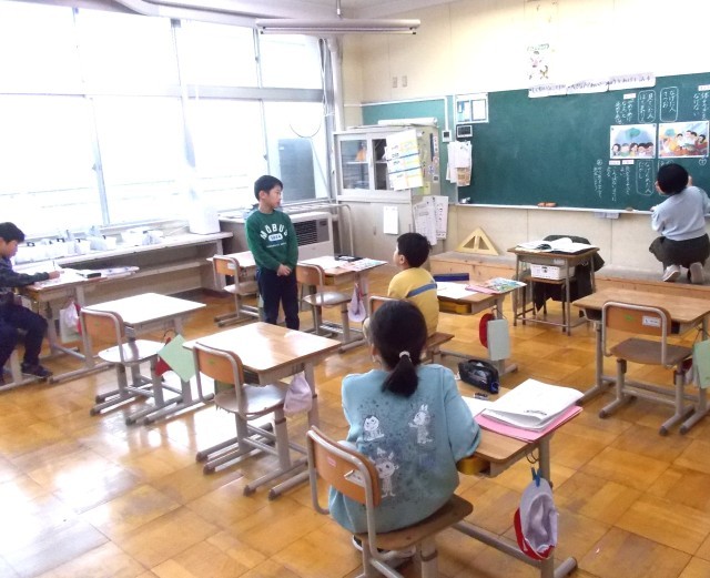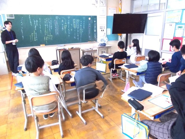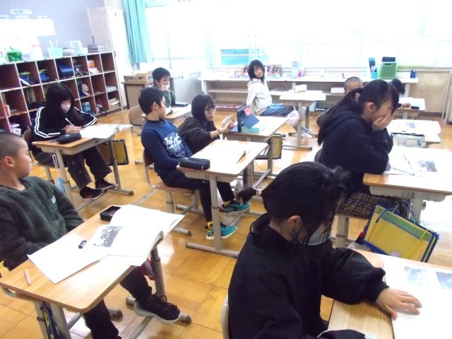 4年生は国語「ごんぎつね」、6年生は合同家庭科「裁縫」(1.2時間目)の様子です。