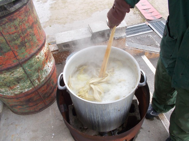 もう一つの原料、先週、皮引きを終えた楮(こうぞ)は、あく抜き作業の真っ最中でした。