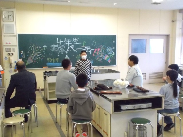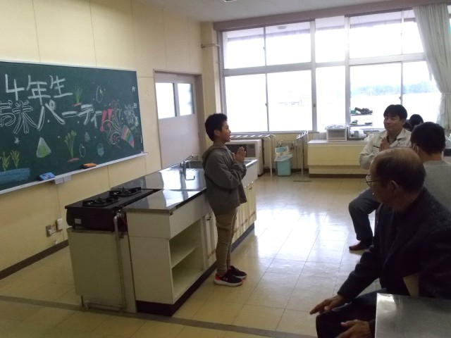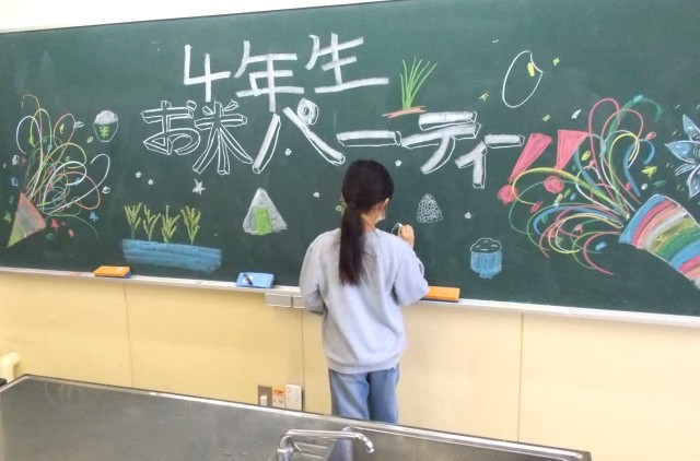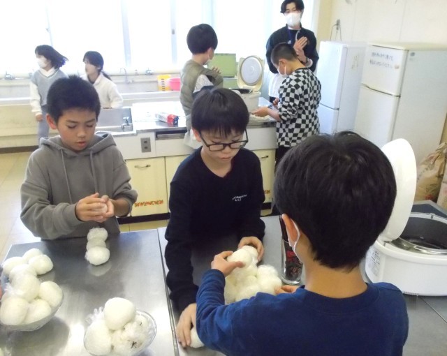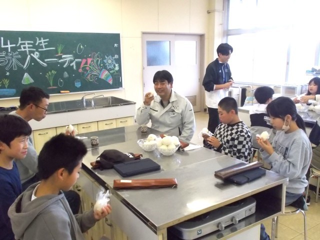総合的な学習で収穫した米で「おにぎり」を作り、パーティーをひらきました。