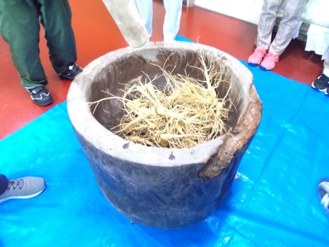 きれいな和紙を漉くために欠かせないのがトロロアオイの粘りを抽出した液体です。