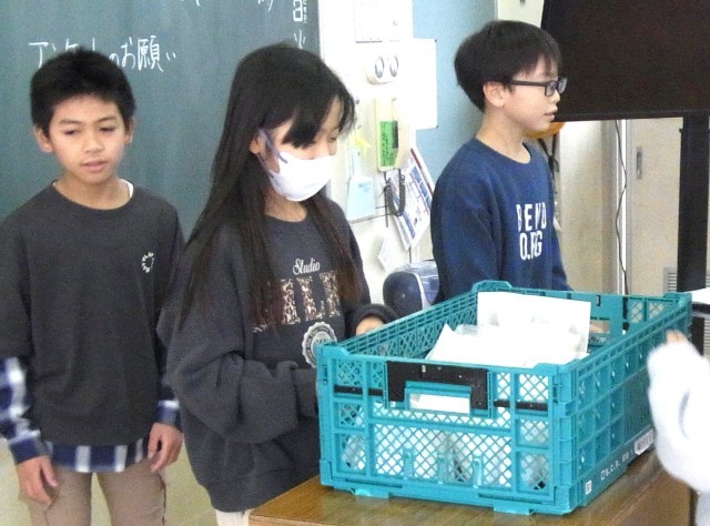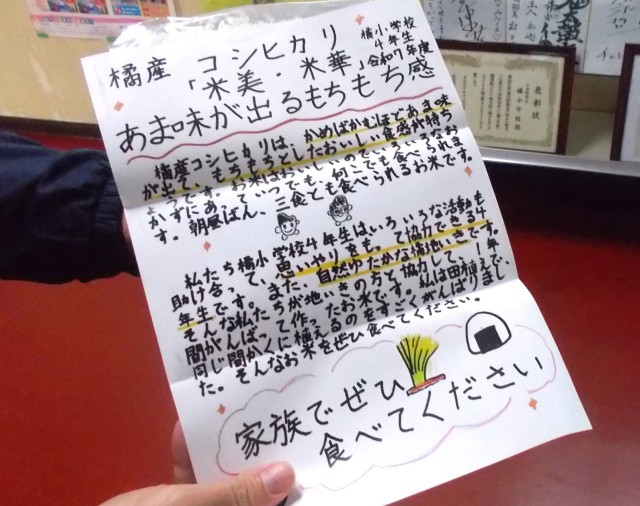 とおか市(分じろう)にて、総合的な学習で収穫したコメの販売活動を行った4年生。