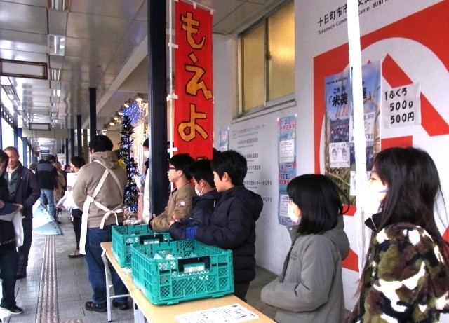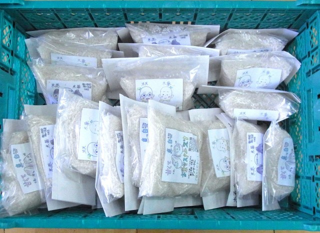 目標は、用意したお米全てを売り切ることでした。 *緑色のケース約2箱分
