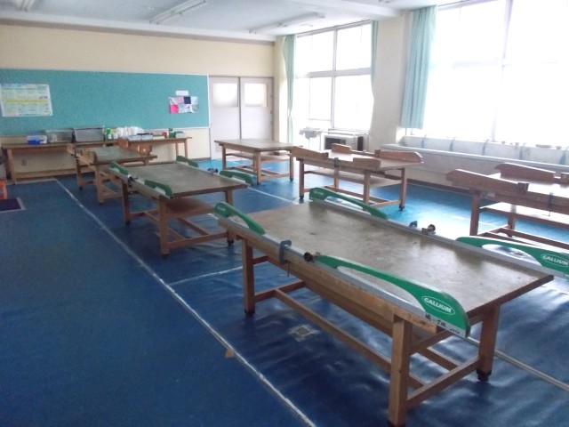 学校では、5・6年生がワックスルームの設営作業を行いました。