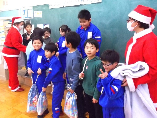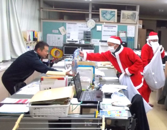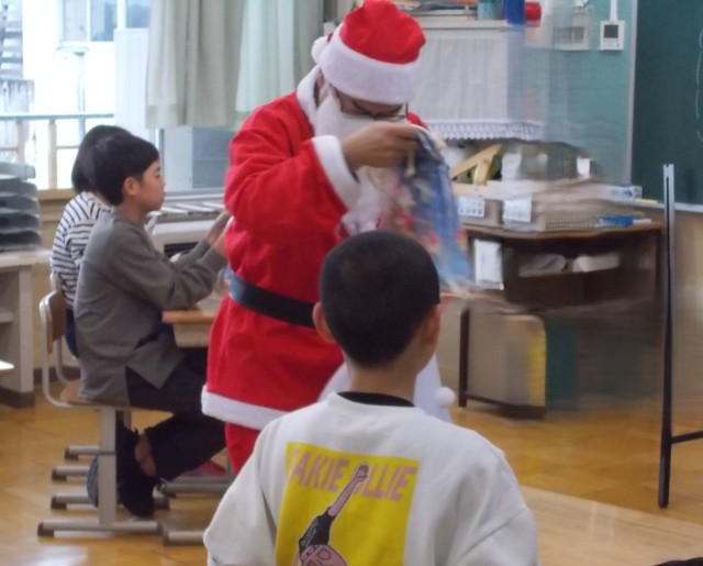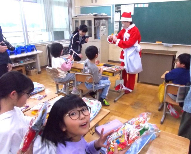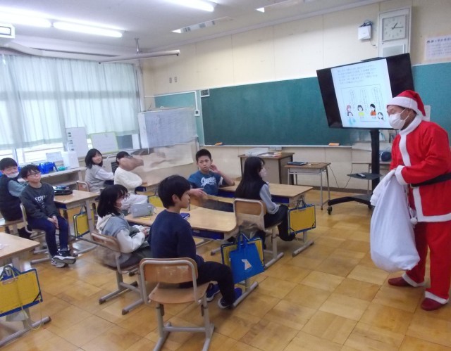 今年も6人のサンタクロースさんが、2人のトナカイさんと一緒に学校にやってきました。