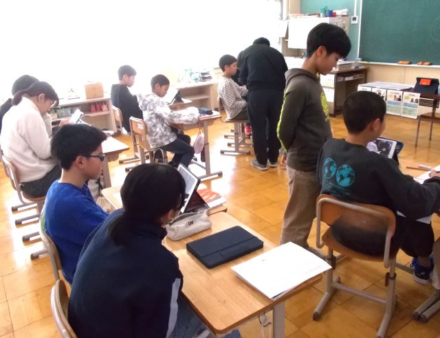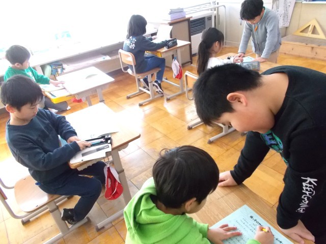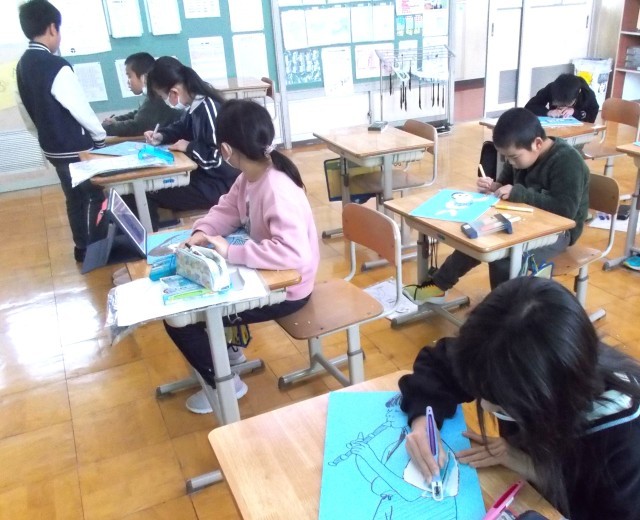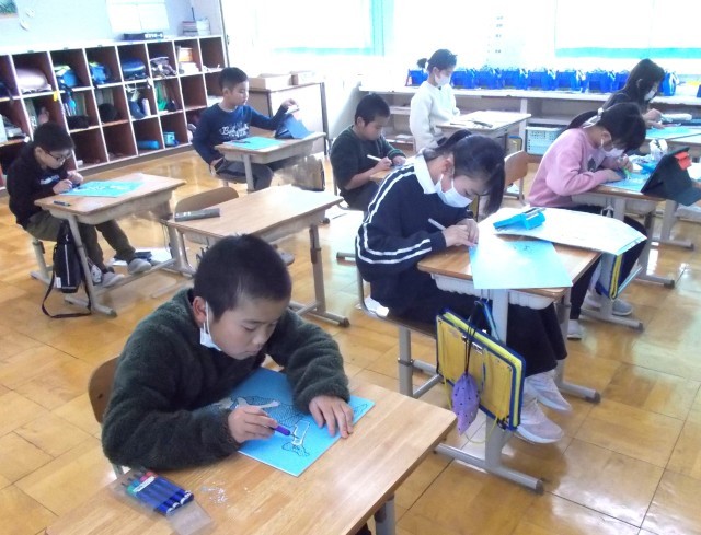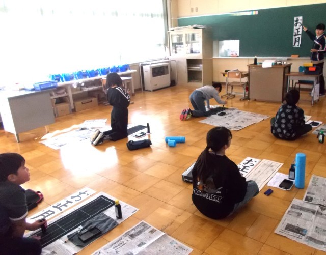 冬休みのきまりを確認したり、お楽しみ会を楽しんだり、集中して書き初めや彫刻刀(版画)、卒業文集制作に取り組んだりと、元気いっぱい学習していました。