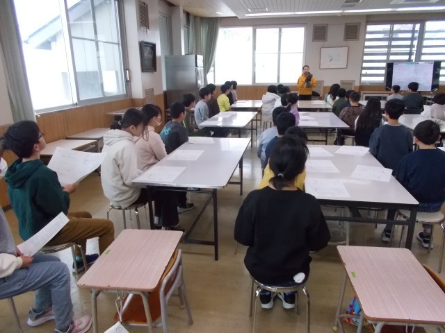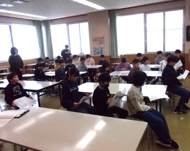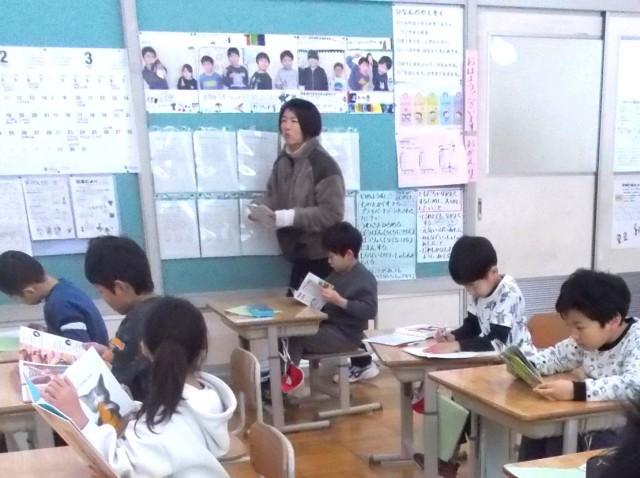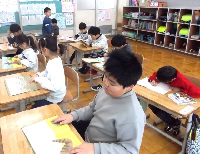 朝学習の時間、 1・2年生は朝読書、3年生以上はアルペンスキー教室に向けた事前学習を行いました。