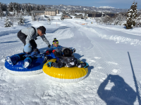 6年生はグラウンド脇の雪山で、日頃の頑張りを癒して!?いました。
