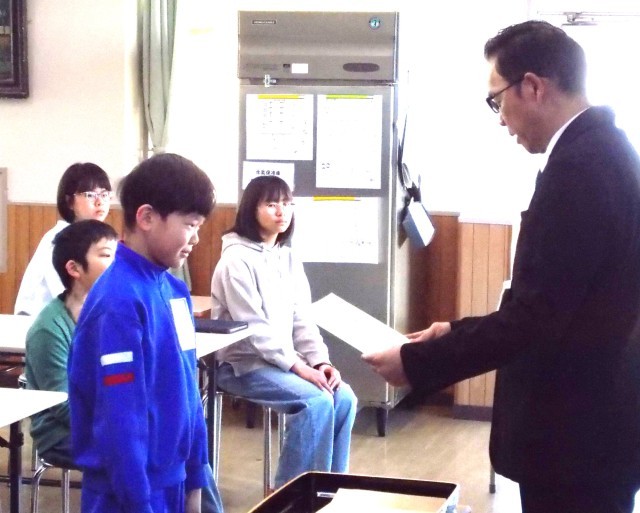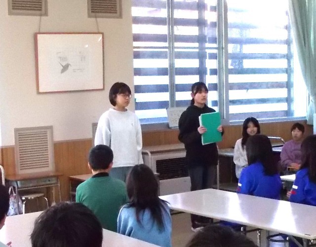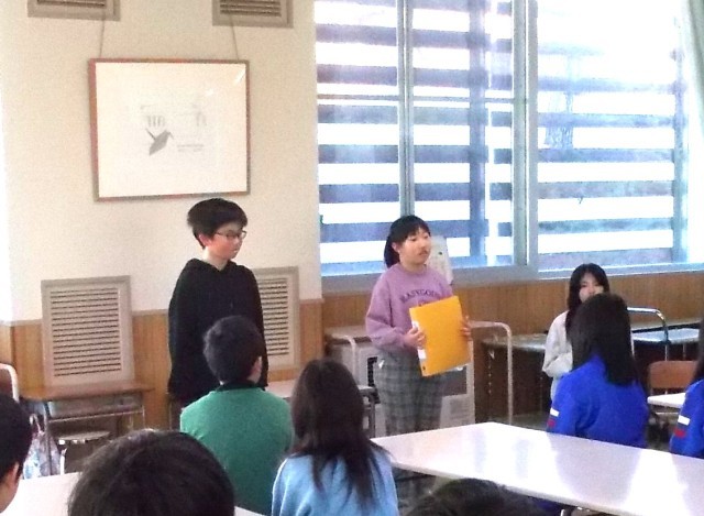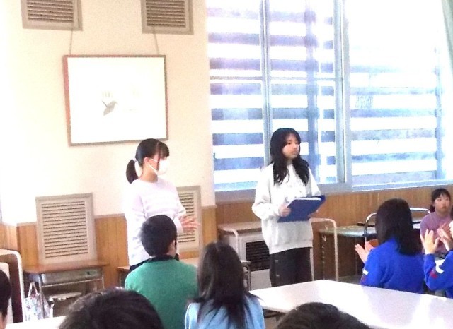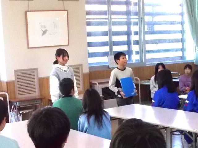 6年生の委員長から5年生の新委員長にファイルが引き継がれました。