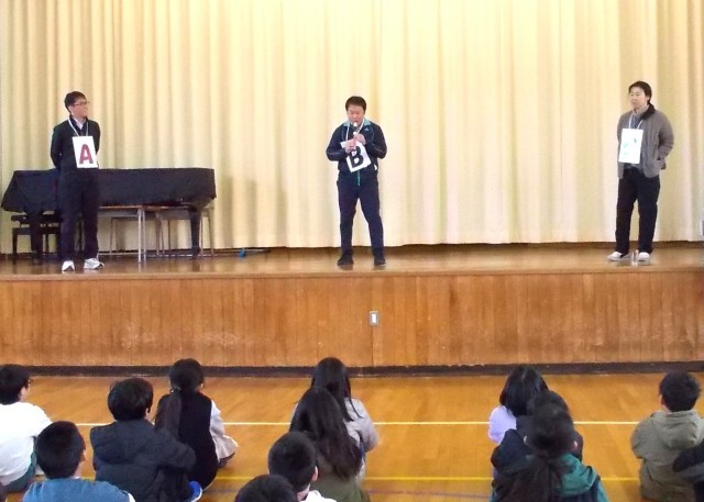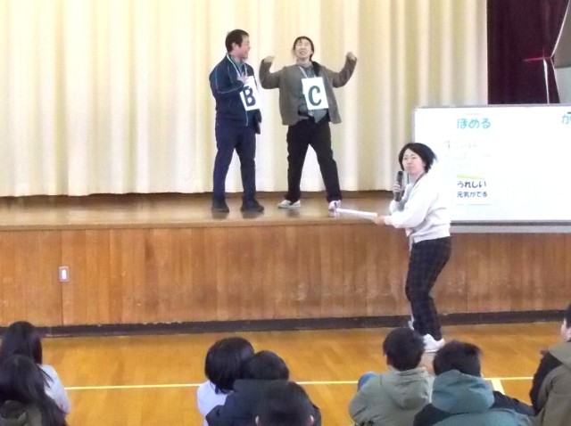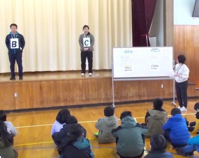 今回、3人の先生方が演じたのは「リコーダー練習を頑張ったBさんへの言葉の掛け方」と、「忘れ物を届けてくれたAさんへの感謝の言葉の伝え方」のシーンでした。