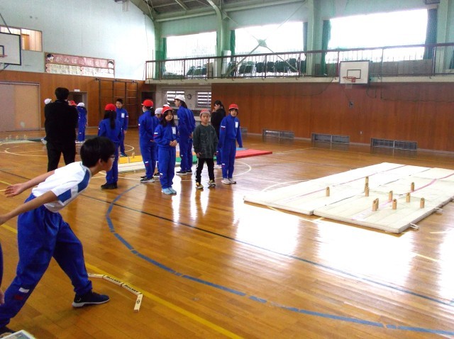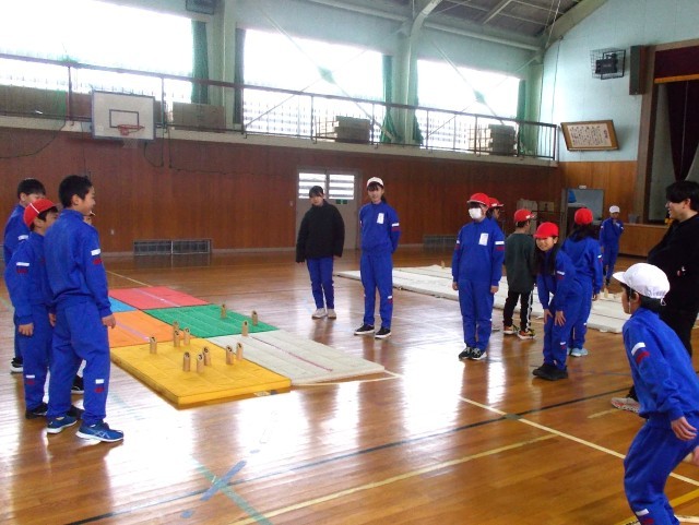 ニュースポーツ「モルック」を楽しんだのは4~6年生。