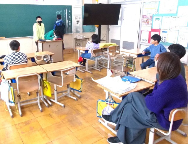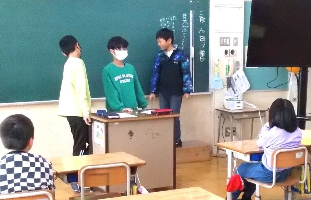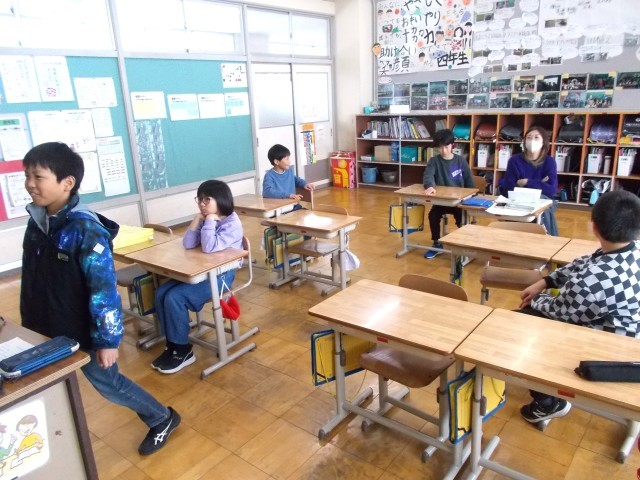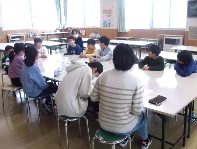 3学期の登下校について、あいさつの仕方、バス乗車のマナー、通学路の歩き方、危険な行動は無かったか等、振り返りました。