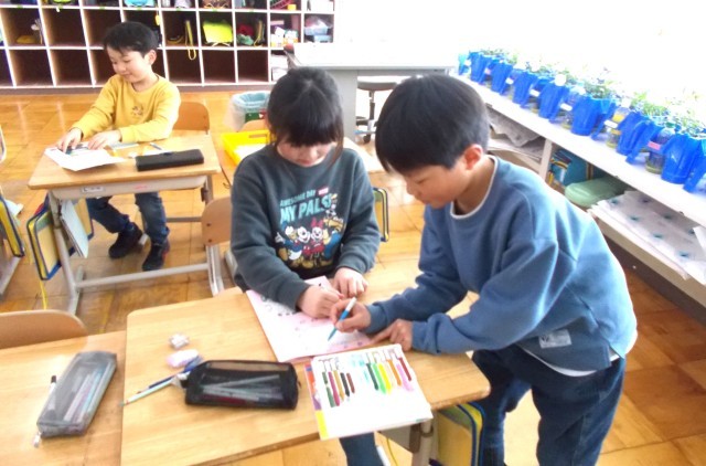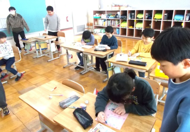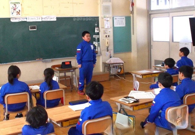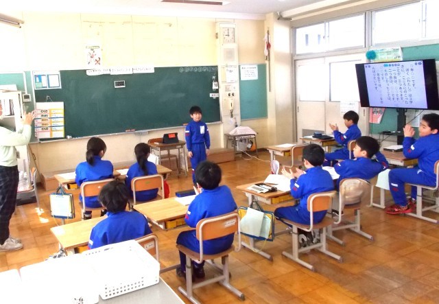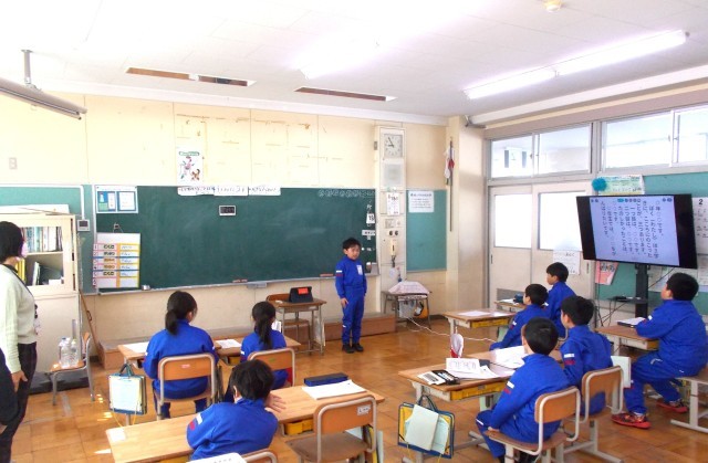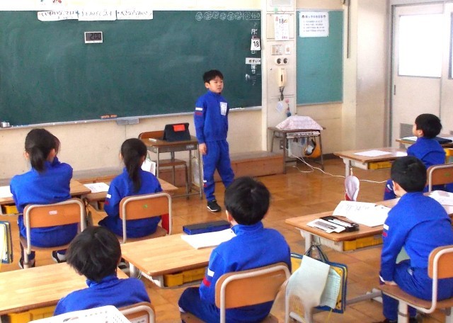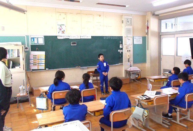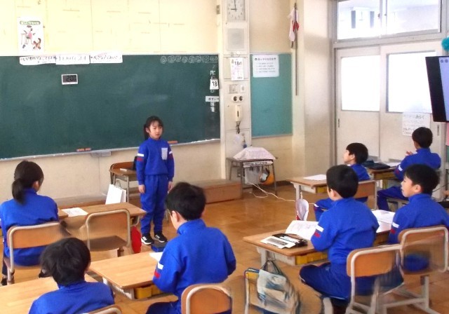 2時間目、1・2年生教室では「頑張ったこと」「できるようになったこと」「来年度の目標」等を紹介し合っていました。