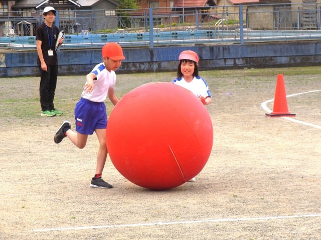 リズムダンス、リレー、大玉送り、大玉転がしの練習をしました。