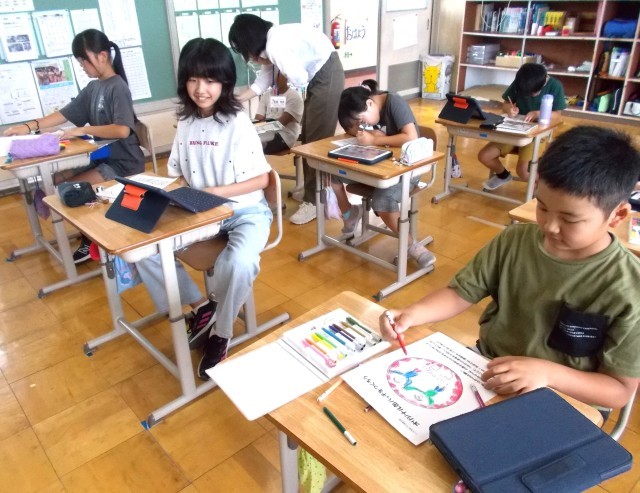 5年生は「缶バッジ」の図案づくりの真っ最中でした。