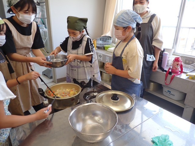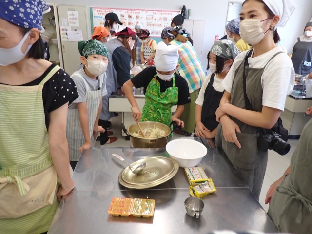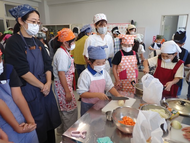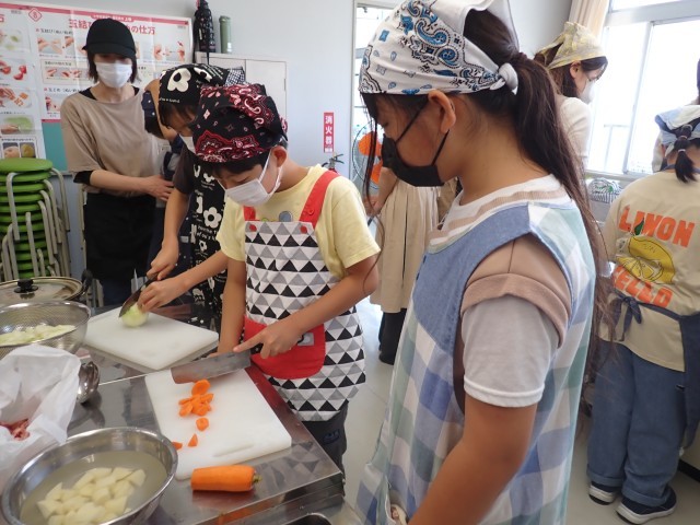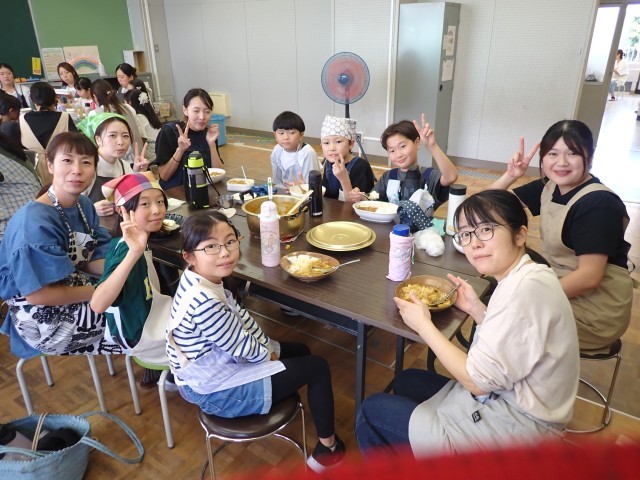 4年生 学年PTA活動親子でカレー作り 公開日 2025/10/06 更新日 2025/10/06 子どもたち・学校の様子 10月2日(木)、4年生の学年PTA行事は親子でカレー作りです。材料の玉ねぎとジャガイモはご自宅から持ってきていただきました。家庭科室は70人もの人でものすごい熱気。包丁やピーラーを使ってカレー作りに取り組む子どもたち。慣れない手つきにハラハラ。ニンジンや玉ねぎを切るのも経験です。お家人の力を借りておいしいカレーが完成しました。 +3