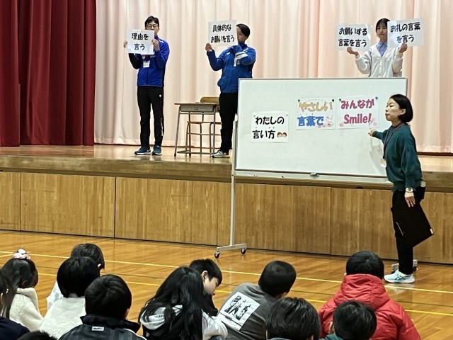11月10日(月)、今年4回目のSST集会が行われました。今回のテーマは上手なお願いの仕方(頼み方)です。自分が困っていて友達から何かを借りたいときにどんな風に伝えたらいいでしょう。職員の寸劇から普段の自分たちの行動を振り返ります。