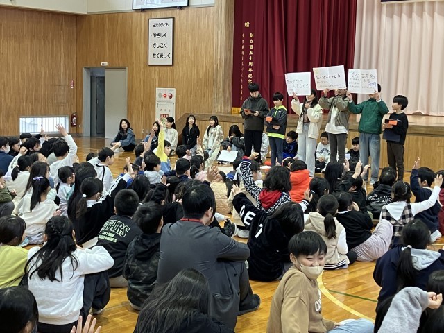 いじめ見逃しゼロスクール集会 公開日 2025/11/17 更新日 2025/11/17 子どもたち・学校の様子 11月14日(金)、」「いじめ見逃しゼロスクール集会」が開かれました。学年ごとに自分たちが決めたいじめに対する取組を発表しました。劇にしたり巻物にしたり、発表の仕方も工夫されていました。全校のみんなでいじめについて真剣に考え、いじめを見逃さない田沢小学校をこれからもつくっていきましょう。 +4