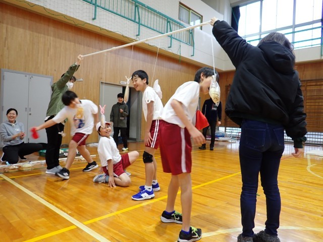 5年生 学年行事 公開日 2025/11/26 更新日 2025/11/26 子どもたち・学校の様子 11月21日(金)、5年生は学年行事で親子によるミニ運動会を行いました。「パン食い競走」や「スプーンリレー」、「何でも送り」や「玉入れ」をして大いに盛り上がりました。最後は親子ドッジボール対決。球の速さに保護者の方は子どもたちの成長ぶりを感じられたのではないでしょうか。 +4