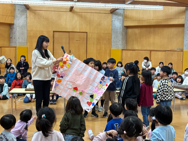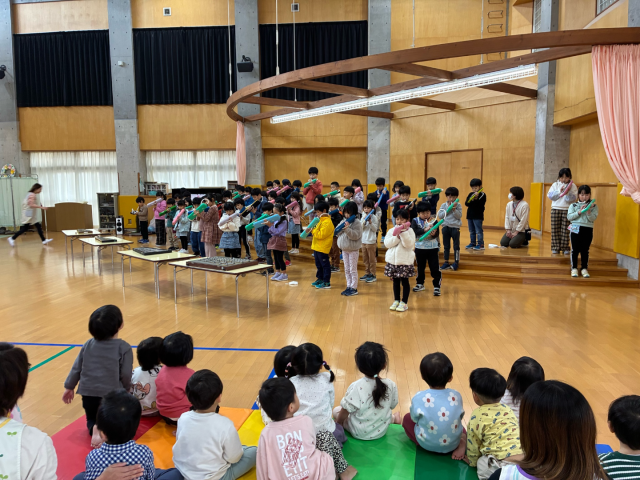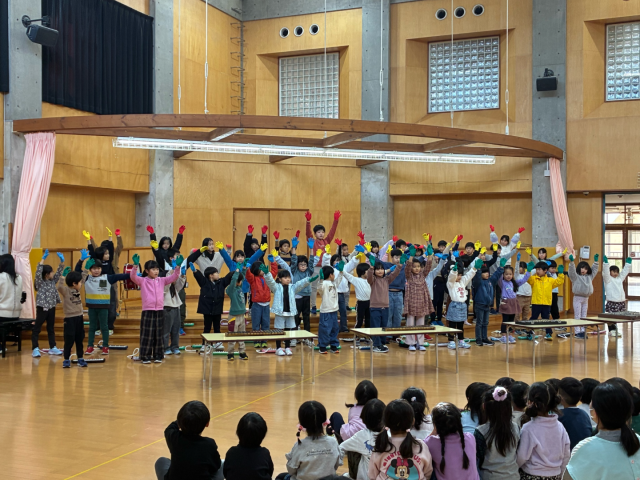 1・2年生 保育園交流活動 公開日 2025/11/26 更新日 2025/11/26 子どもたち・学校の様子 11月21日(金)、1・2年生は中里なかよし保育園で園児との交流活動を行いました。音楽祭のために練習してきた合唱や合奏を園児の前で披露しました。発表の後は、園児と一緒にドッジボール!そして、最後はじゃんけん列車。しっかりお兄さんとお姉さんの1・2年生。園児と一緒に楽しい時間を過ごすことができました。 +3