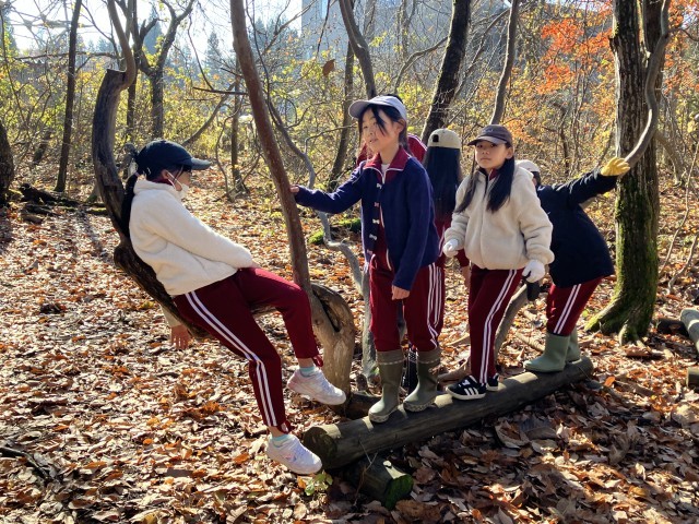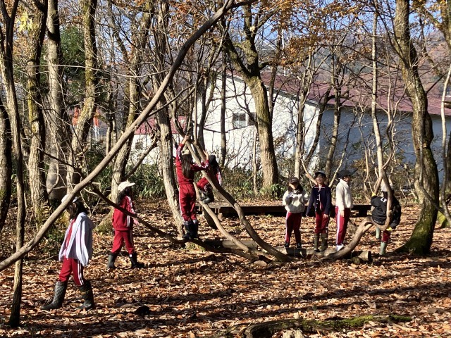 4年生 干溝の森へ 公開日 2025/11/28 更新日 2025/11/28 子どもたち・学校の様子 11月27日(木)、4年生は干溝の森へ出掛けました。すっかり落葉し、地面は一面の落ち葉。珍しいキノコやサルノコシカケを発見しました。おにごっこをしたり木登りをしたりと楽しみ方はそれぞれです。みんなが秋の干溝の森を楽しみました。もうすぐ冬。この森ともしばらくお別れです。 +5