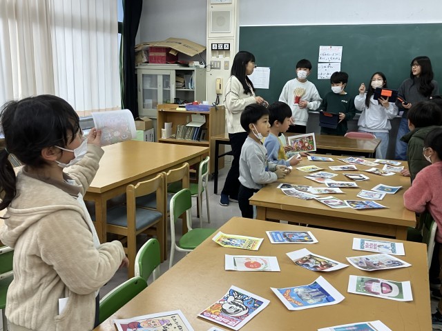 かるた大会 公開日 2025/12/19 更新日 2025/12/19 子どもたち・学校の様子 12月18日(木)、お昼休みを利用して「本となかよし委員会」の企画したかるた大会が図書室で行われました。20冊の本の表紙が印刷された紙を取り合って競います。委員会の子どもたちが本の内容を読むと、ハイ!と紙を取る声が響きます。本好きな子どもたちが集まっているとあって、なかなか白熱しました。さあ、最後の1枚を取るのは誰でしょう? +3