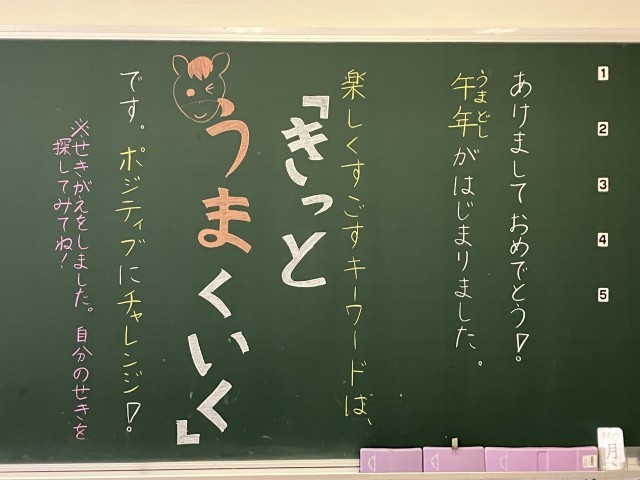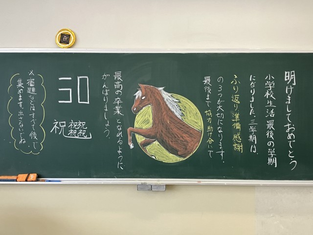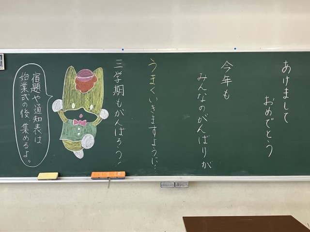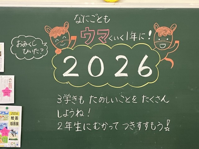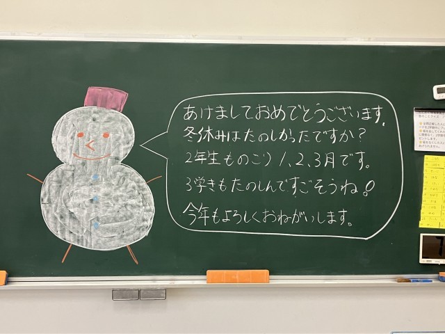 3学期初日の朝 公開日 2026/01/09 更新日 2026/01/09 子どもたち・学校の様子 1月8日(木)、今日から3学期がスタートします。降雪の中、子どもたちはたくさんの荷物を持って登校してきました。久しぶりの教室です。黒板には子どもたちに向けて書かれた担任のメッセージが。 +7