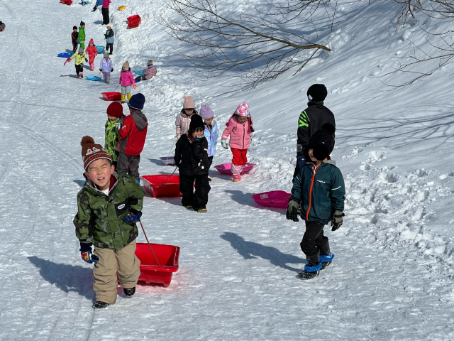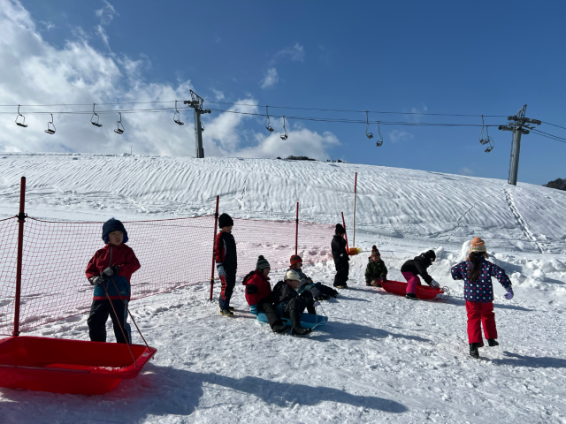 1・2年生 松之山温泉スキー場へ 公開日 2026/02/17 更新日 2026/02/17 子どもたち・学校の様子 2月13日(金)、1・2年生は生活科の学習で松之山温泉スキー場に行って雪遊び。青空が広がり気持ちいいですね。そりで滑ったり、雪だるまを作ったり。ゲレンデに子どもたちの声が響きました。しっかり雪遊びを楽しんだ子どもたち。遊び疲れて帰りのバスでは眠ってしまう子も。 +5