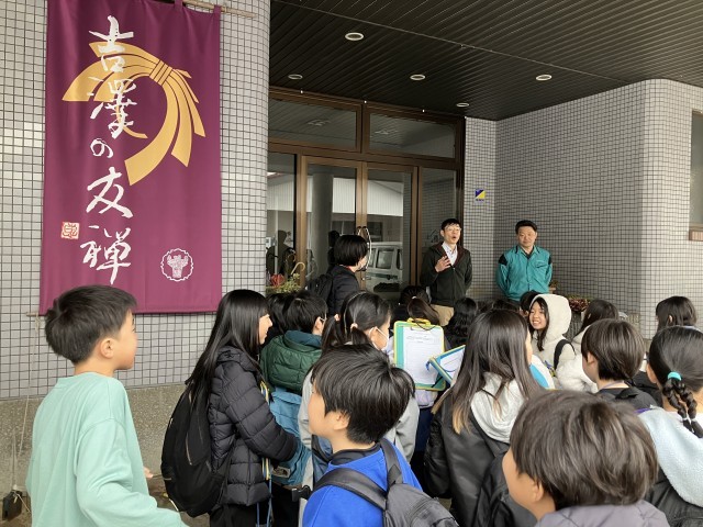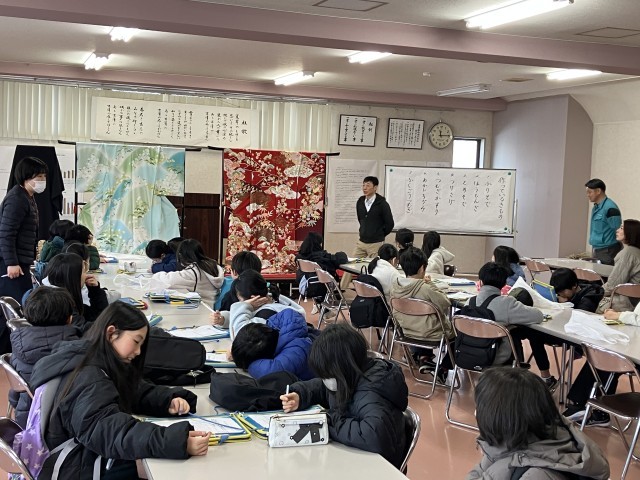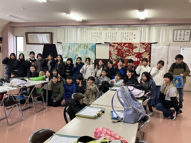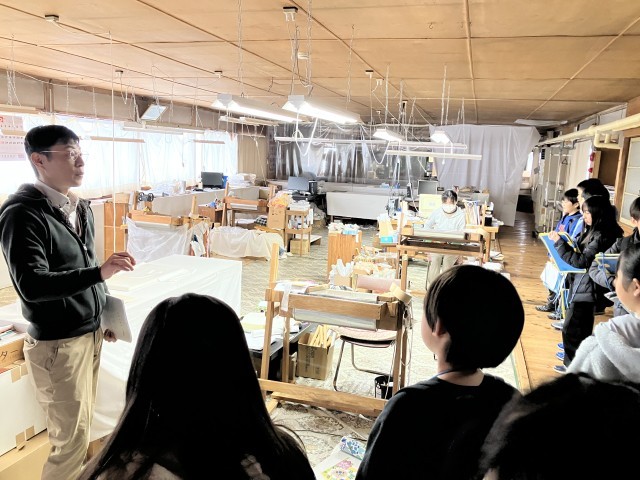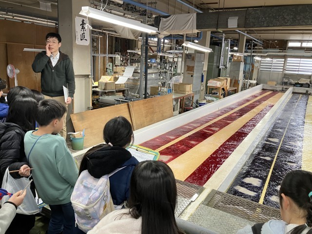 2月25日(水)、4年生は社会科の学習で吉澤織物に見学に行きました。織物は十日町を代表する産業です。2グループに分かれて説明をお聞きし、着物のできる過程を細かく教えていただきました。すごく古い機械を大事に使っていることや1つの着物の模様のために400枚もの型紙が必要になることに驚きました。一つの着物ができあがるまでに図案から半年、作業だけで3か月かかるそうです。
