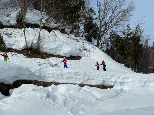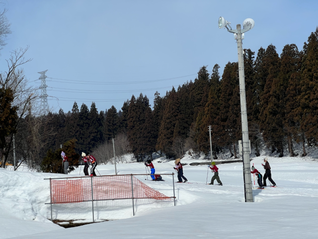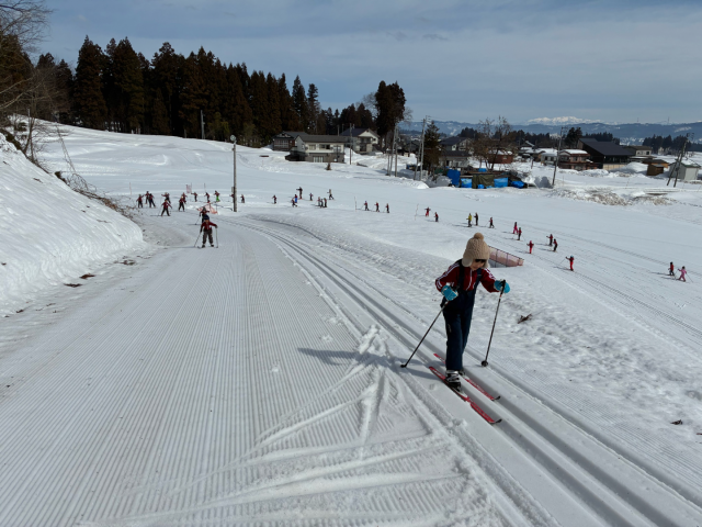 2月27日(金)、1・2年生は吉田クロスカントリー競技場に行ってクロカンの練習をしました。競技場に来るのは今年度2回目です。前回は雪模様でしたが、今日は晴天。気持ちよくスキーができます。長いコースもなんのその。上り坂も一生懸命上りました。この授業で今年度のクロカン授業は終了となります。