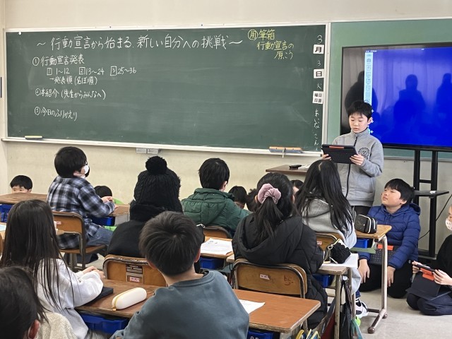 3月3日(火)、1~5年生の学修参観が行われました。1年生は1年間の成長ぶりを知ってもらうために、自分ができるようになったことを披露しました。2年生は産まれてから今までの成長の様子を本にして紹介しました。3年生はこれまで調べた十日町や地域の推しスポットをかるたにして楽しみました。4年生は一人一人が環境に関する学びと行動宣言を発表しました。5年生は米作りから学んだことを発表し、グループごとにお茶碗ご飯を盛るような形にまとめました。どの学年も工夫されていてすばらしかったです。ご来校いただいた皆様、ありがとうございました。