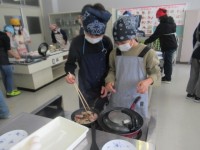 2月27日の給食花火ビンバ丼(中里産コシヒカリ)、ゆらめくスノーキャンドルスープ...