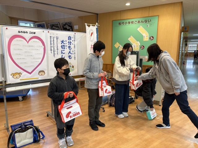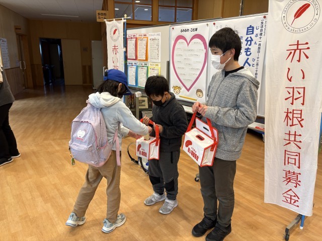 情報委員会の皆さんが、毎朝児童玄関前に立ち、募金の呼びかけを頑張っています。