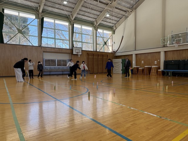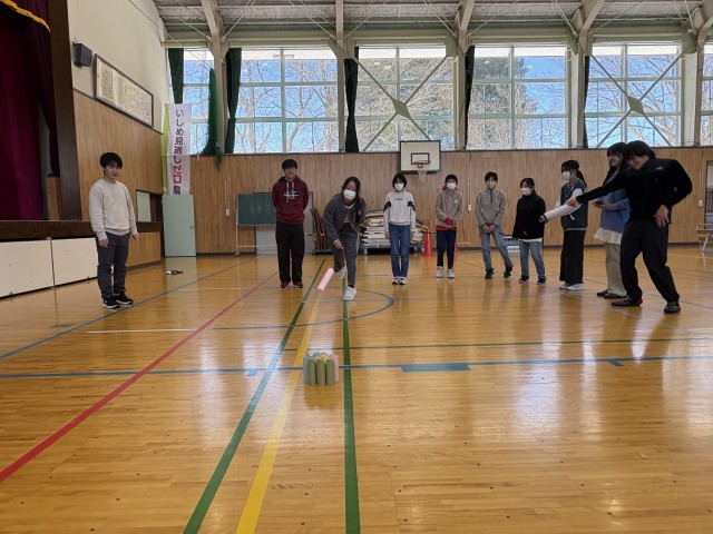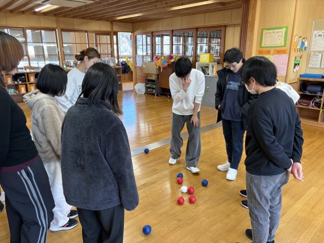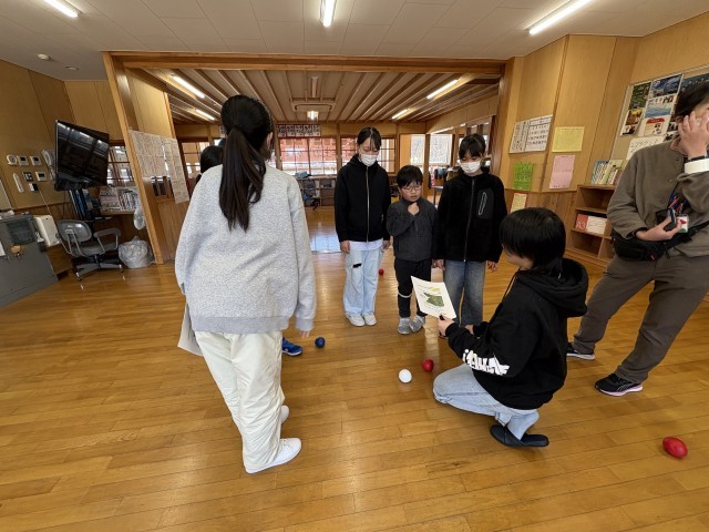 5.6年生が、ボッチャやモルックなどのゲームを通して交流を深めています。