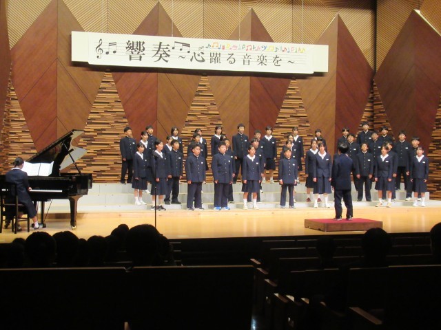 どの学級も、約2週間、昼休みや放課後の練習に取り組んできた成果を十分に発揮し、素晴らしい合唱を披露してくれました。学年合唱でも、それぞれの学年のカラーを出しながら、美しいハーモニーを奏でてくれました。特に3年生は、ホール全体に圧巻の歌声を響かせてくれました。