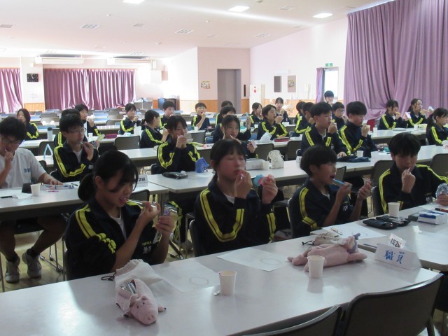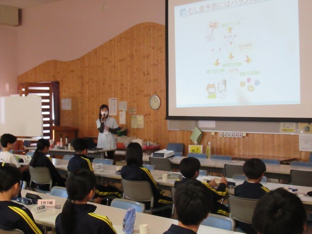 12日(水)、講師に歯科衛生士の角山ひとみ様をお招きして、1年生に歯周病予防教室を開催しました。