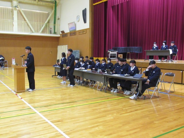 今回の生徒総会は1年間の生徒会活動を総括し、来年度につなげていくための大切な会です。そのため、全校生徒は真剣な態度で会に臨み、建設的な意見交換を行いました。