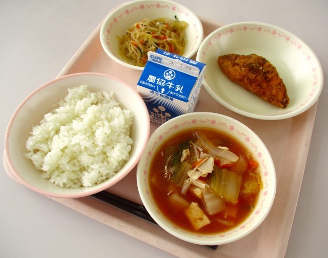 今日のへるっ塩メニューは、「トマトチゲ鍋」です。 味のひみつは、コチュジャンです。 コチュジャンは、米や大豆に「麹」を加えて発酵・熟成させた発酵調味料で、少ない塩分でもコクと旨味を感じることができます。 また、トマトの酸味や、あさりに含まれる「旨味成分」の「コハク酸」と合わさり、塩をひかえてもおいしく仕上げることができます。