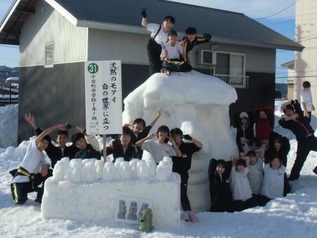 19日(木)、20日(金)の5・6時間目に、1年生が「分じろうひろば」で雪像づくりに取り組み、「十日町雪まつり」に出品しました。