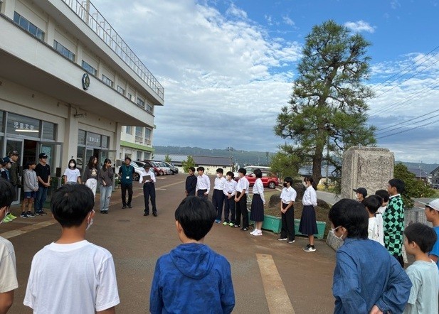 中条中学校は、代表生徒が中条小学校、飛渡第一小学校、東小学校に伺い、一緒に挨拶運動を行いました。