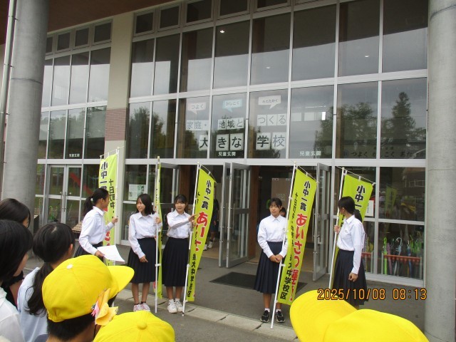10月8日(水)本日も拡大中学校区で挨拶運動を行いました。